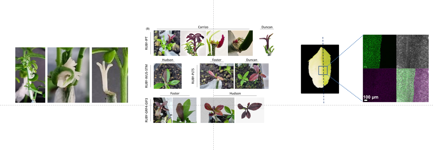 Genome editing provides a transformative route for accelerating citrus research and breeding. Our work focuses on developing advanced editing platforms, ranging from tissue-culture-based systems to in-planta delivery methods, that enable precise and efficient modification of citrus genomes. Alongside targeted editing, we also implement transgenic approach to study gene function and validate trait-associated pathways in citrus. Our study aims to support fundamental discovery, long-term improvement of key horticultural traits and streamlined breeding pipelines.
